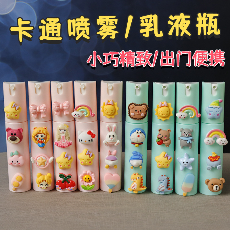 漫画かわいいスプレーボトルローションボトル小さなボトル化粧水ミニ分注ボトル旅行補水携帯プレス空ボトル