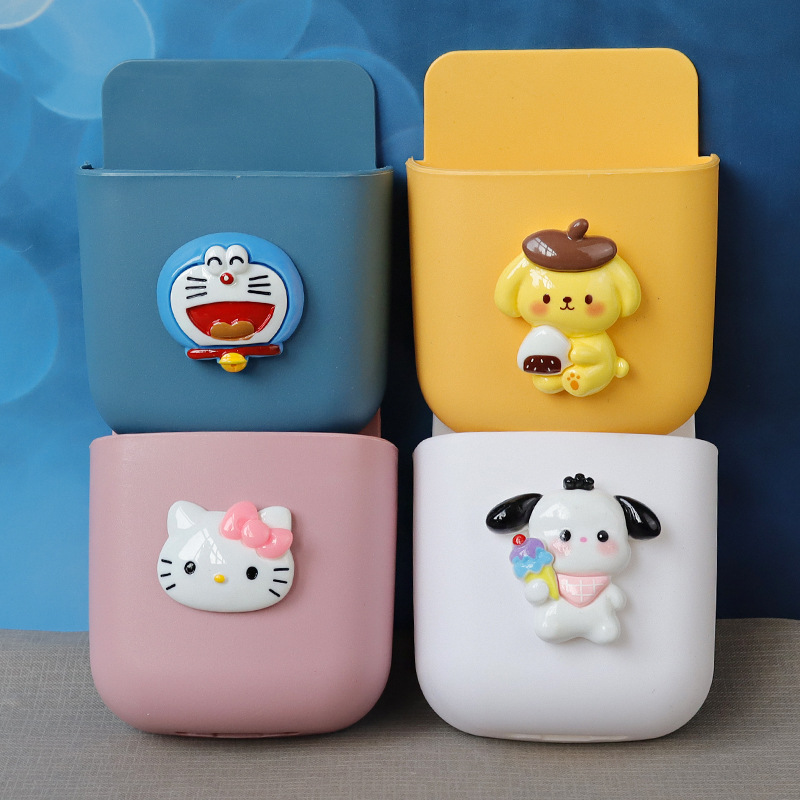 アニメかわいいリモコン収納ケース穴なし壁掛け式寝室ベッドの携帯電話充電スタンド