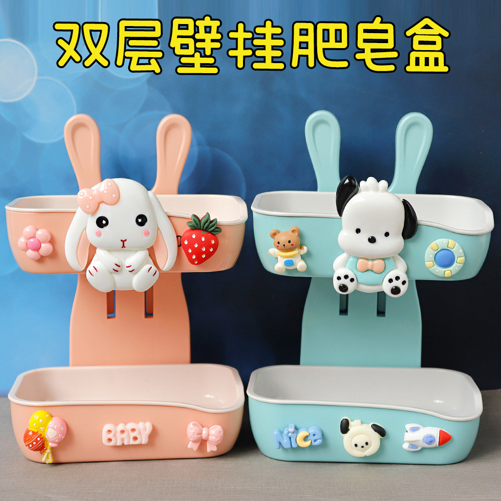 アニメのかわいい二重石けん箱は穴を開けないで壁掛け式のアイデアを切って石けん箱のトイレの棚を置くことができます