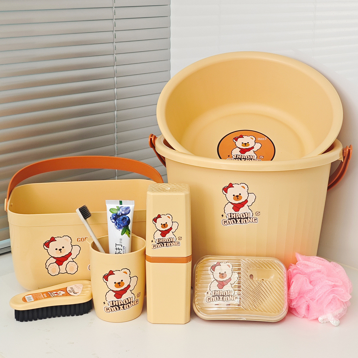 学生宿泊洗面用品セット入学シーズン軍事訓練入浴用品バケツ洗面器コップ歯磨き粉石鹸ケース9セット