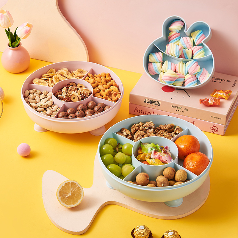 かわいいアニメの果物皿収納ケース家庭用客間茶何糖果箱ドライフルーツ皿大容量二重透明盛り合わせ