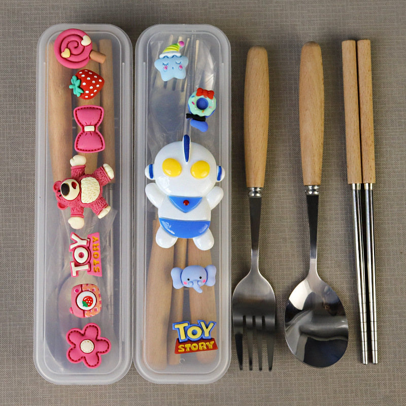 アニメ創意日系携帯食器セット学生サラリーマン屋外木柄ステンレス箸スプーン三点セット
