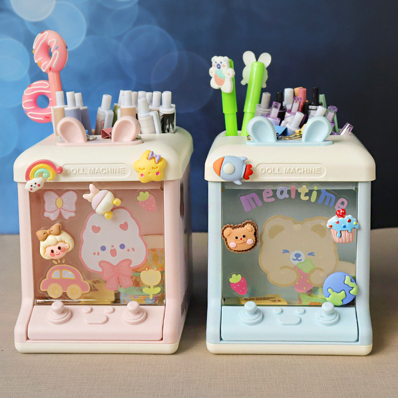 漫画のかわいい子供の机のデスクトップの学生の文房具のアイデアのおもちゃのぬいぐるみの手はブラインドの箱を作って収納箱を展示します。