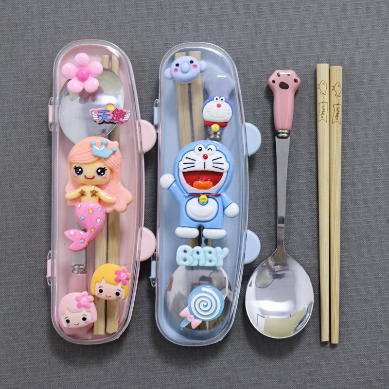 漫画かわいいポータブル食器ボックスクリエイティブ家庭用子供学生サラリーマンスプーン箸セット旅行食器