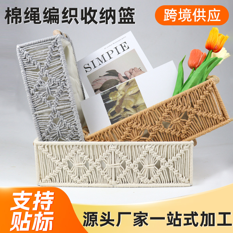 クロスボーダーデスクトップ収納ボックス綿ロープ編まれた麻ロープ収納バスケットスナックキー雑貨バスケット化粧品ボックス