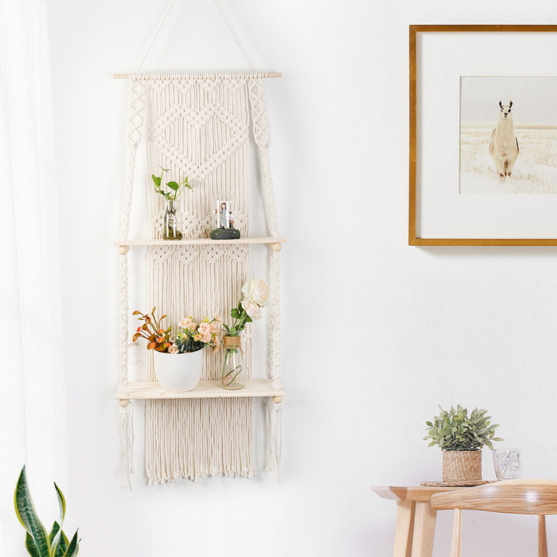 クロスボーダー織物収納ラックボヘミアン手作り綿ロープ壁掛けタペストリーラックホームストレージ単層パーティションラック