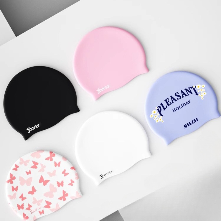 女性用スイミングキャップ、防水、非伸縮性、ロングヘア用の特大シリコン耳保護、男性用の大人用スイミングキャップ