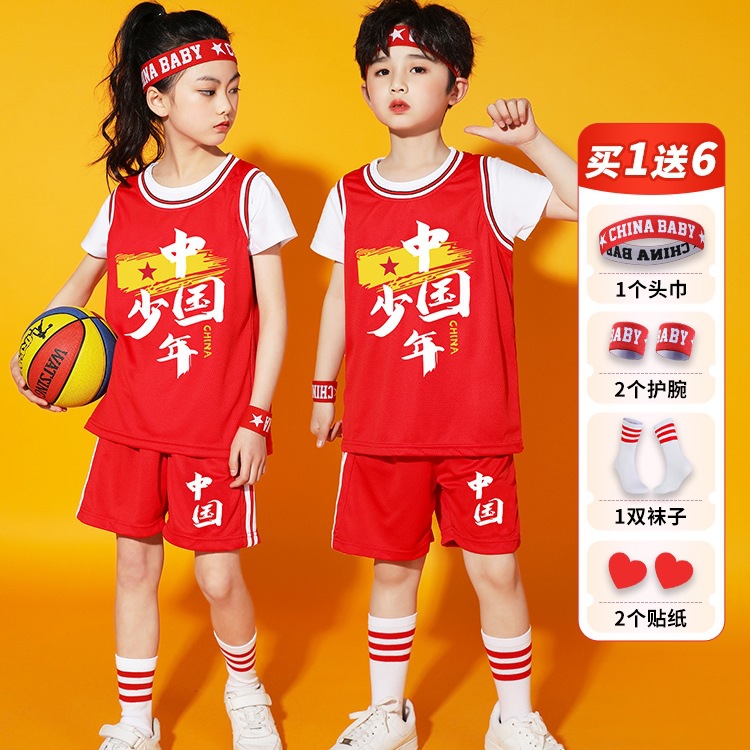 男の子と女の子用の子供用バスケットボールユニフォームスーツ、偽のツーピース半袖幼稚園小学生卒業写真パフォーマンスユニフォームジャージ