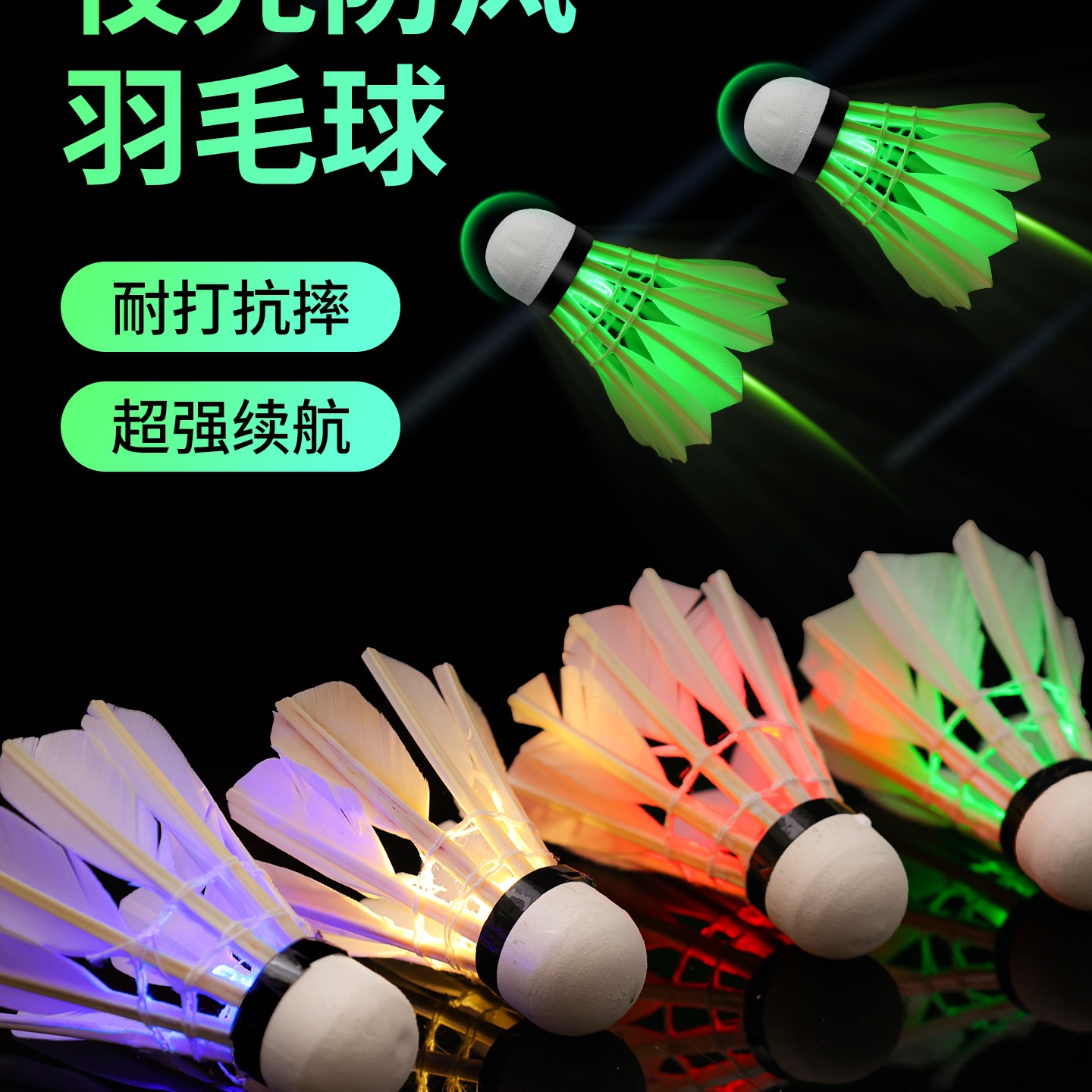 暗闇で光るバドミントン グースフェザー 発光 防風性と耐久性 夜間使用 耐久性のある夜間屋外蛍光ボール ヘッドバンド ライト付き プロフェッショナルグレード