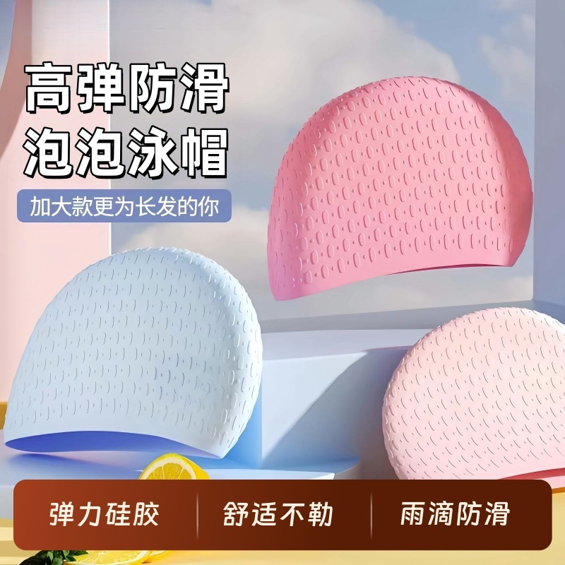 長い髪の女性用のスイミングキャップ、防水、非伸縮性、ファッショナブル、プロフェッショナル、大人のヘアケア、耳の保護、防水、非伸縮性、男性用シリコンスイミング