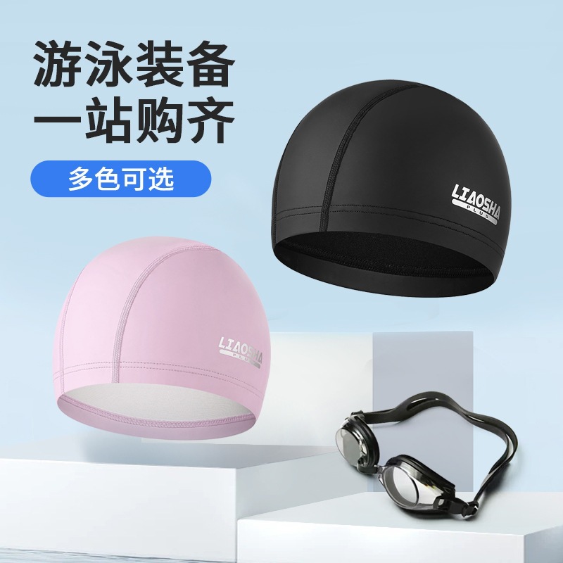 男性と女性の大人の水泳キャップピンクのロングヘア防水 PU 水泳キャップ黒の拡大キャップ水泳プール帽子