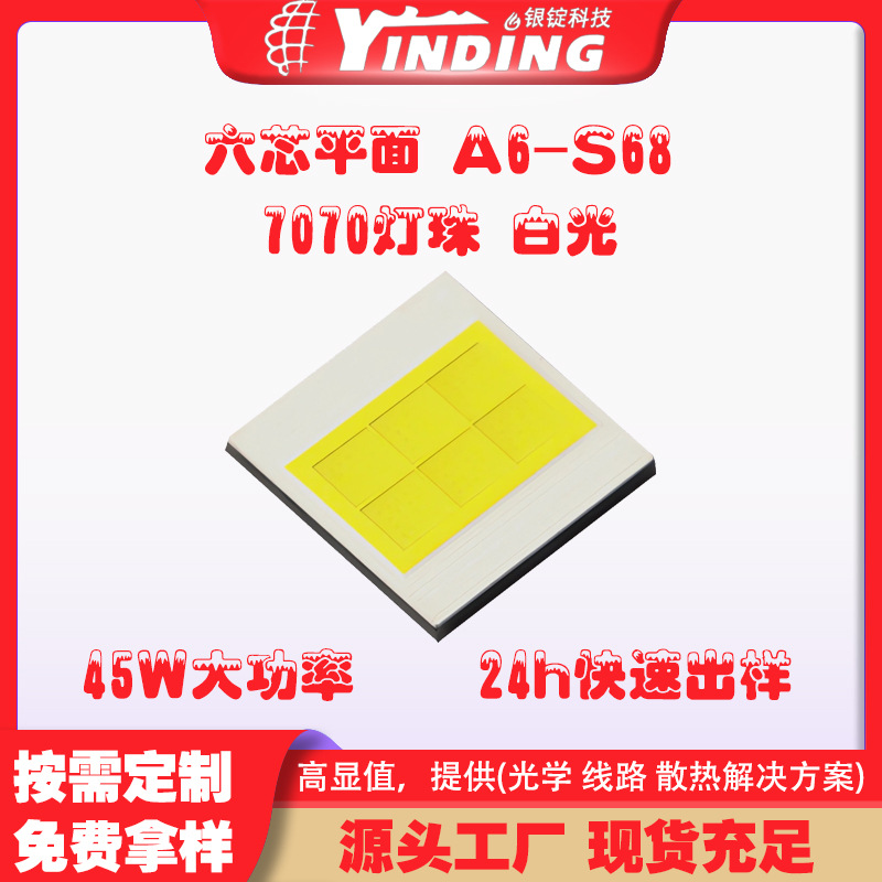 銀錠led電球メーカー7070六芯平面A6-S68白色光45w自動車灯ハイパワーled電球