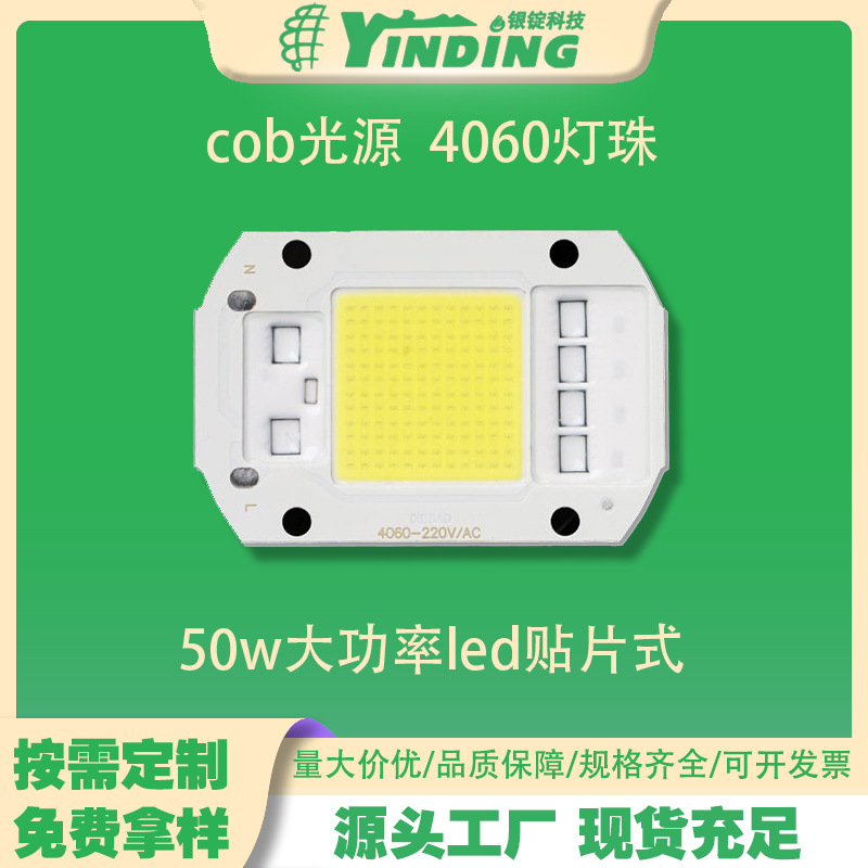 銀スピンドル科学技術cob光源4060灯珠白色光50wハイパワーled灯珠チップ光源工鉱灯