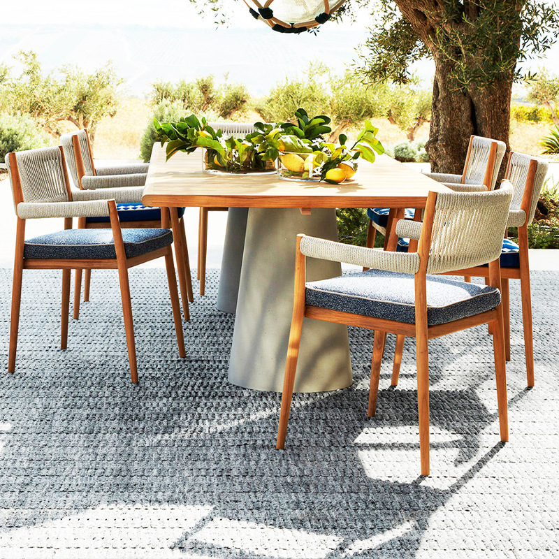 北欧の実木チークのテーブルと椅子の庭の別荘のベランダの屋外の露天の花園のホテルの防腐のチークのレジャーの藤の椅子