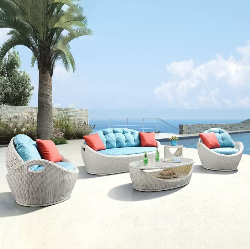 北欧屋外籐編みソファ庭屋外バルコニー防水組み合わせ別荘ガーデンテラス籐チェア家具