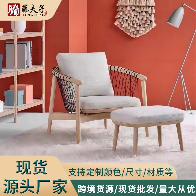 モダンアウトドア籐編みソファ庭防水モデルルーム民宿ベランダカジュアルシングル籐椅子背もたれカジュアルチェア