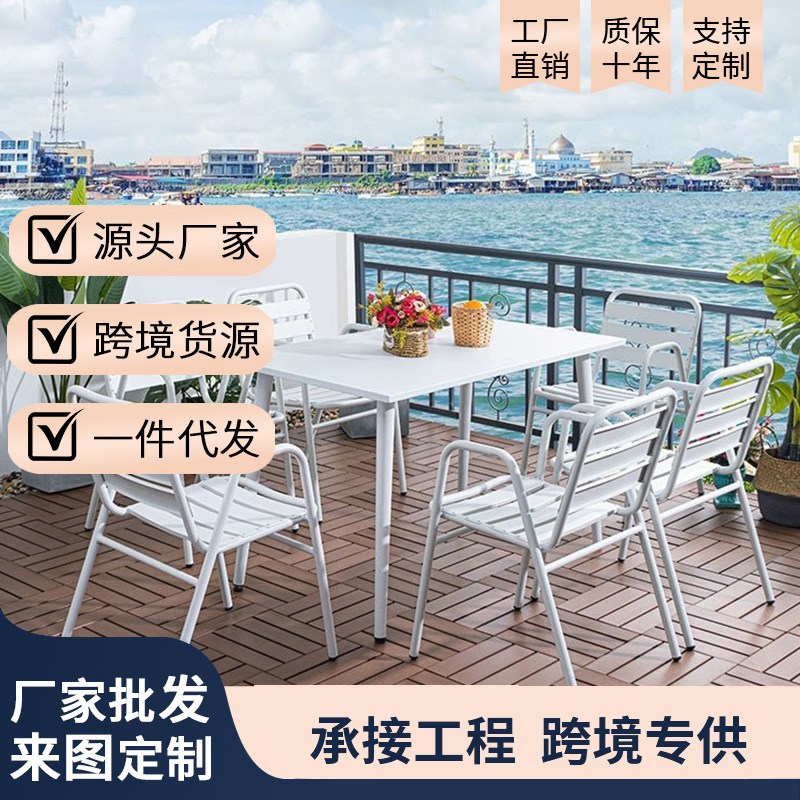 北欧の屋外のアルミニウム合金のテーブルと椅子の喫茶店の甘い店のミルクティーの店の外でベランダのテーブルと椅子の全アルミニウムの椅子の組み合わせを並べます。