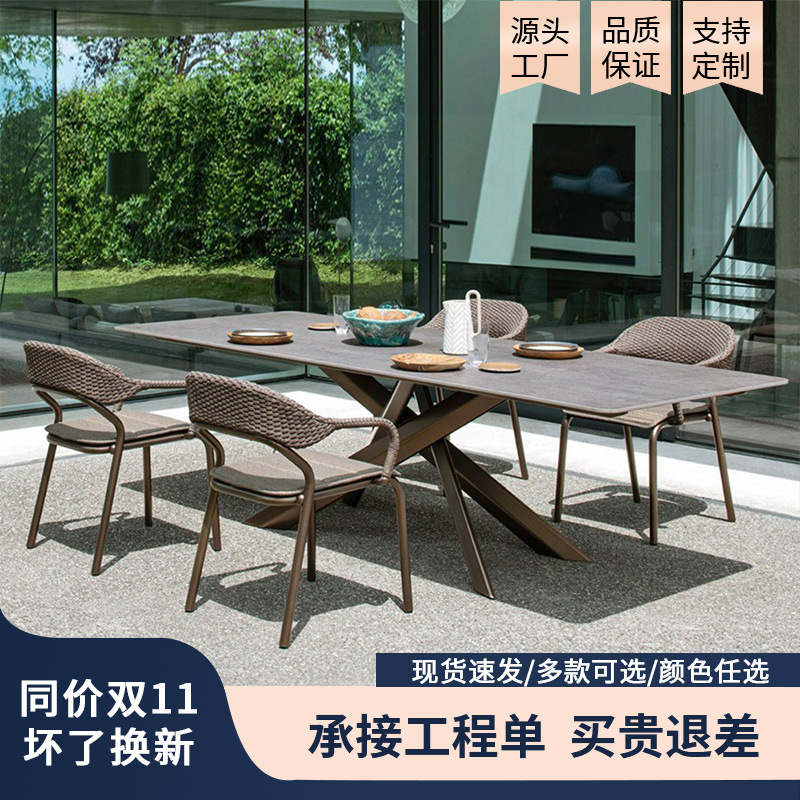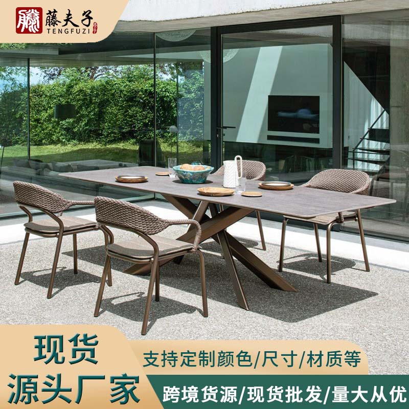 屋外テーブルと椅子の組み合わせ庭園露天防水日焼け止め花園別荘屋外レジャー藤編藤椅子岩板食卓