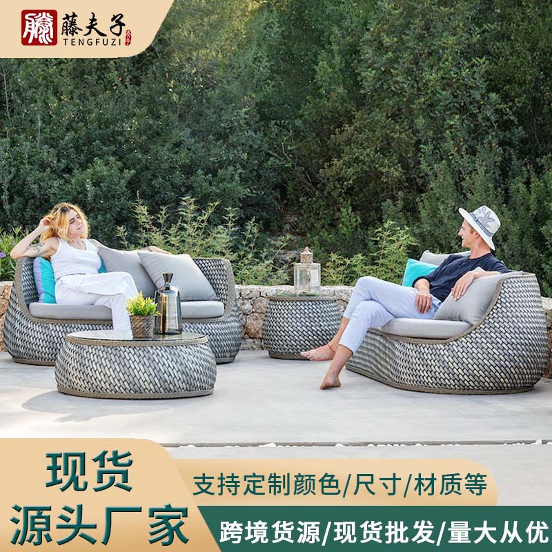 北欧屋外ダブル籐編みソファ籐リビングルームバルコニー籐椅子防水日焼け止め庭カジュアル籐編み家具