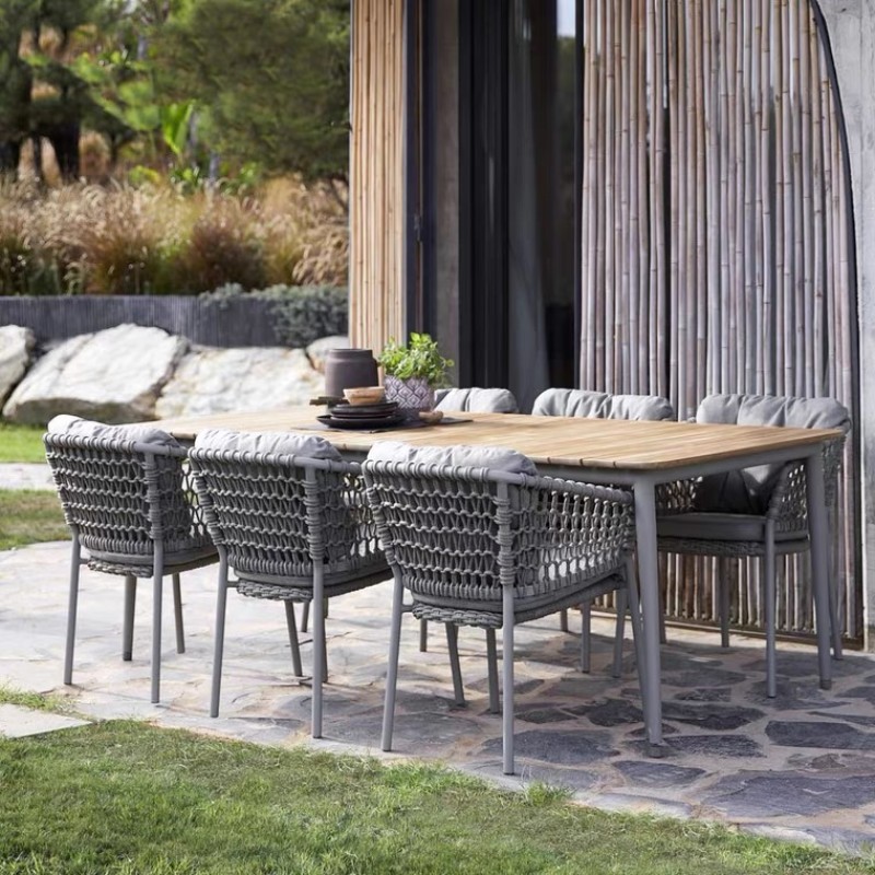 屋外のテーブルと椅子の室外の防水庭園の日焼け止めのグレープフルーツの食卓の藤の椅子の別荘の花園の露天のハイエンドの実木の家具