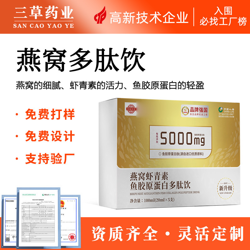 ツバメの巣アスタキサンチンフィッシュコラーゲンペプチド経口液体OEMカスタマイズアルブミンペプチドコラーゲントリペプチドドリンク経口液体
