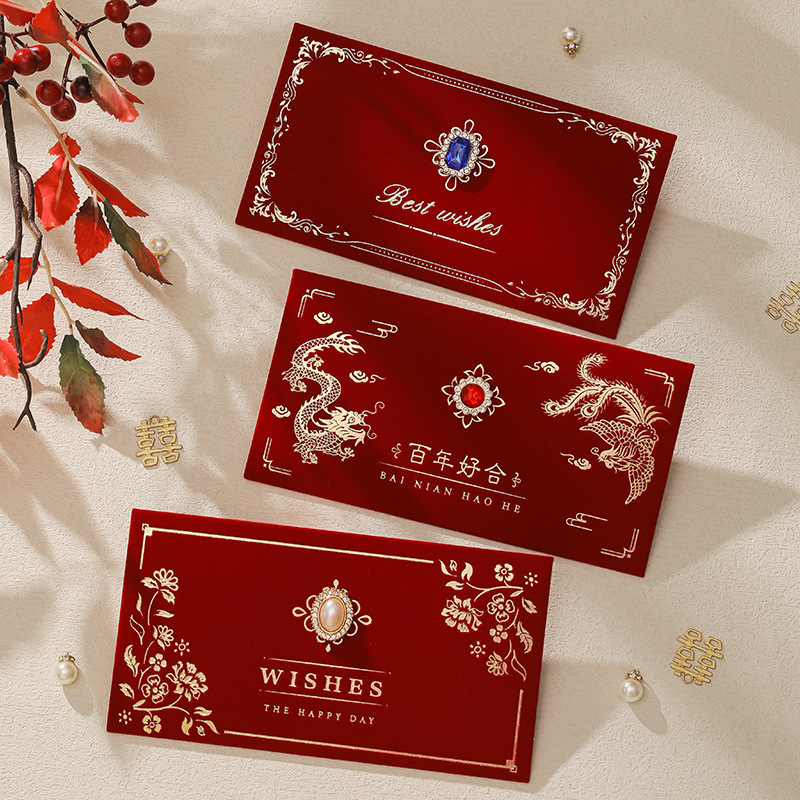赤包結婚専用2024新型ベルベット万元大紅包袋結婚式は礼の高級利益に合わせて封じられた