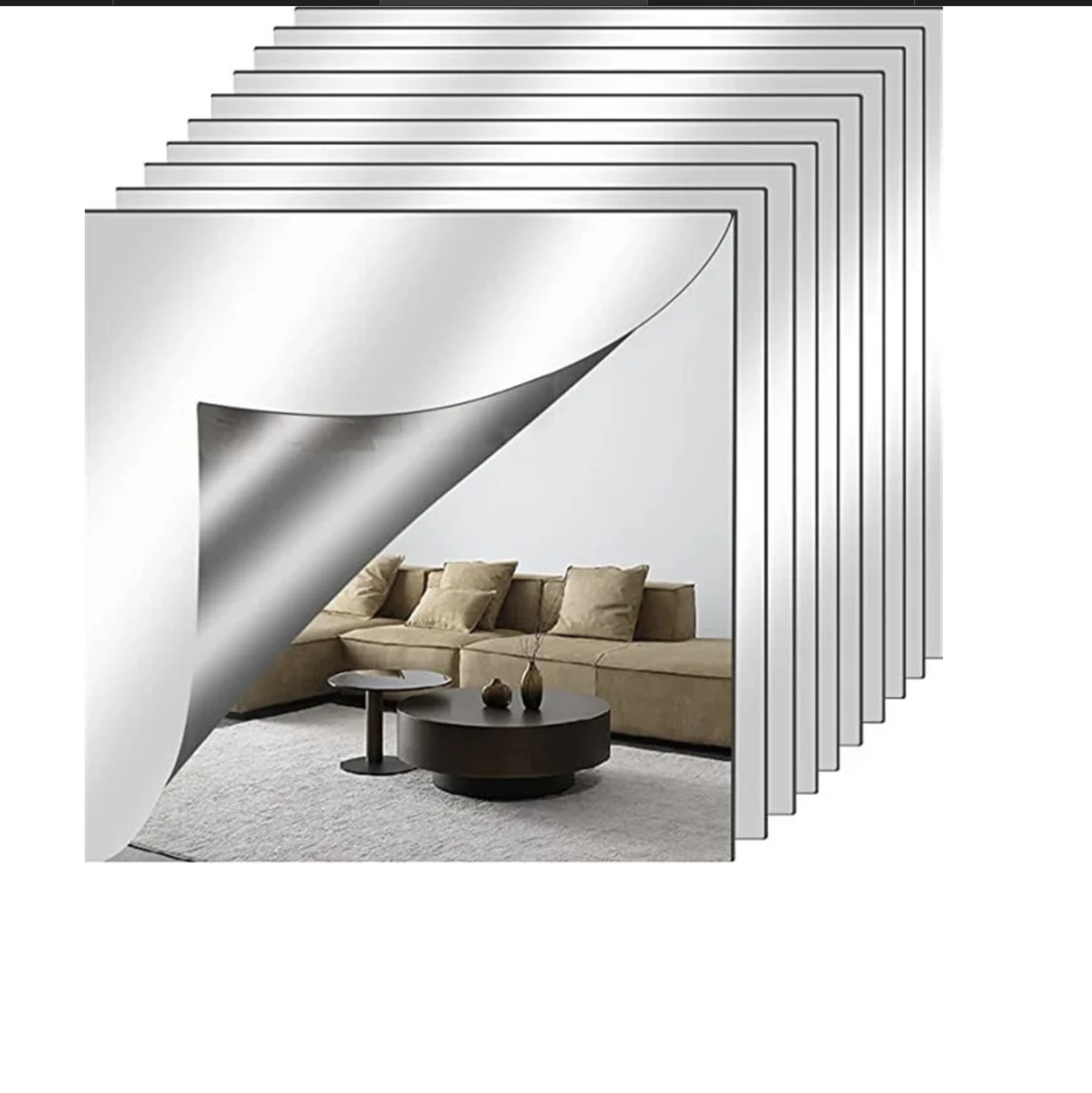 アクリルミラーウォールステッカー家庭用全身ミラー浴室寮ドレッシングミラー自己粘着ミラー20x20cm 4個