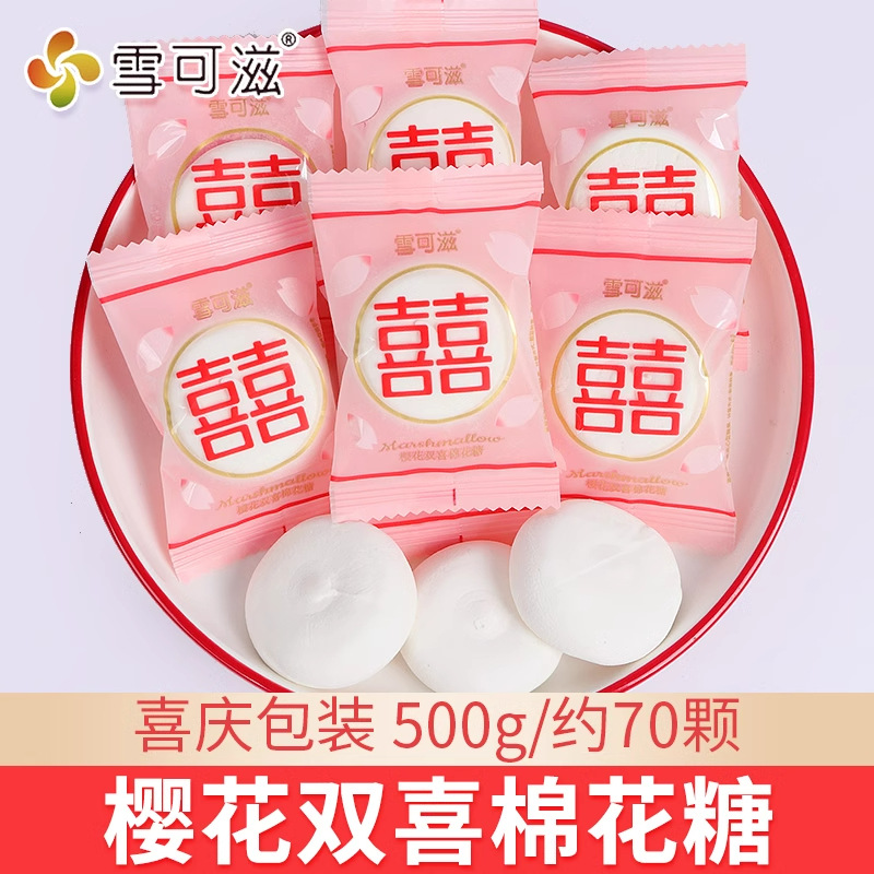 雪可滋桜双喜マシュマロサンドイッチグミ結婚喜糖卸売りクリスマス間食キャンディーばら積婚糖