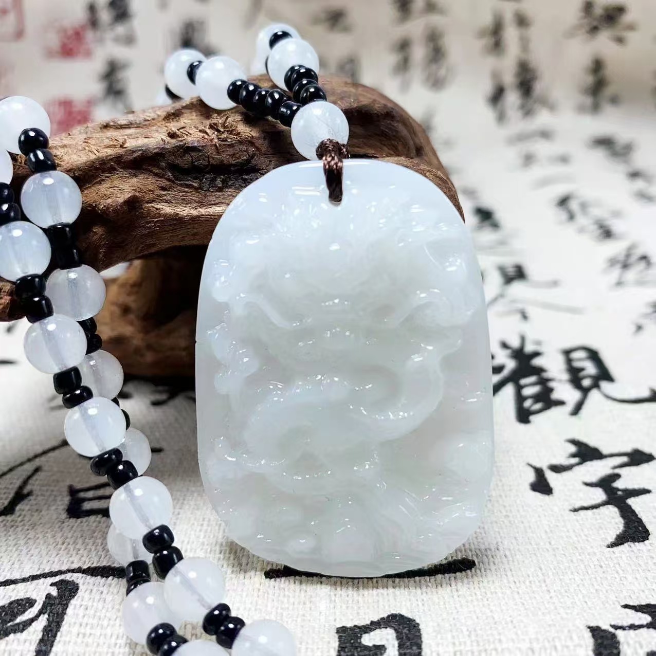 新疆和田墨玉九尾狐玉石ストラップ瑪祖観音生肖古龍ペンダント