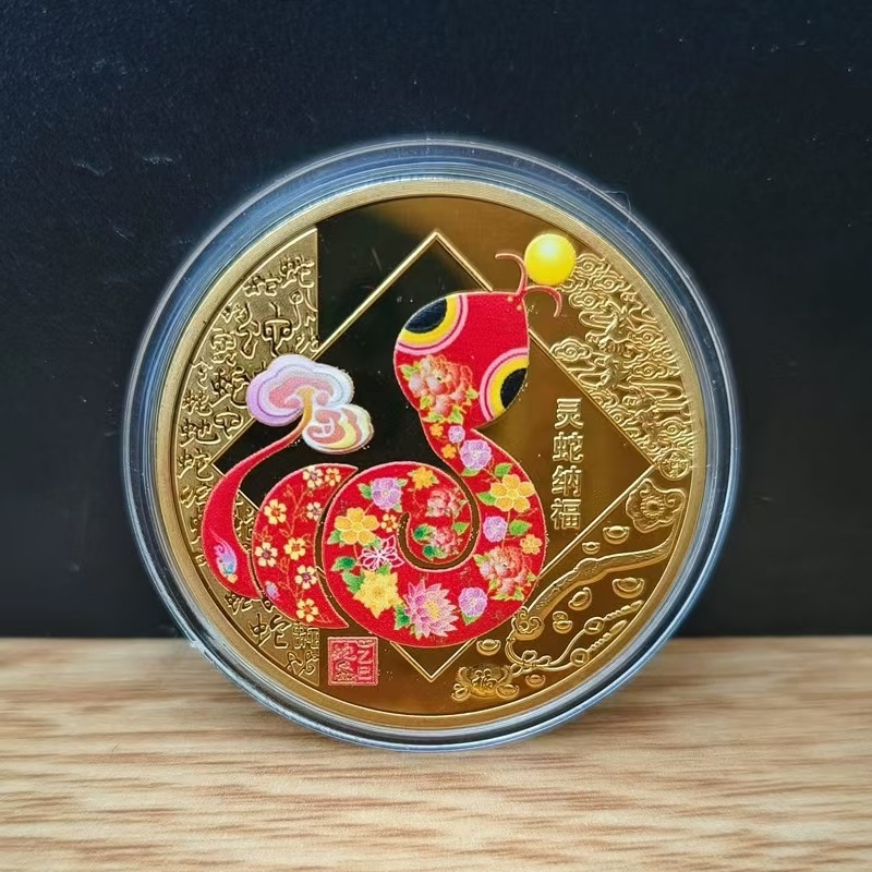 2025蛇年小プレゼント生肖蛇カラー工芸品記念バッジ金銀貨賀歳記念プレゼントコレクション