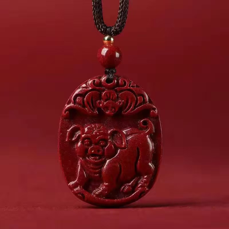 純正品朱砂本命年天然十二生肖豚ペンダントネックレス平安ボタン本命豚年プレゼント