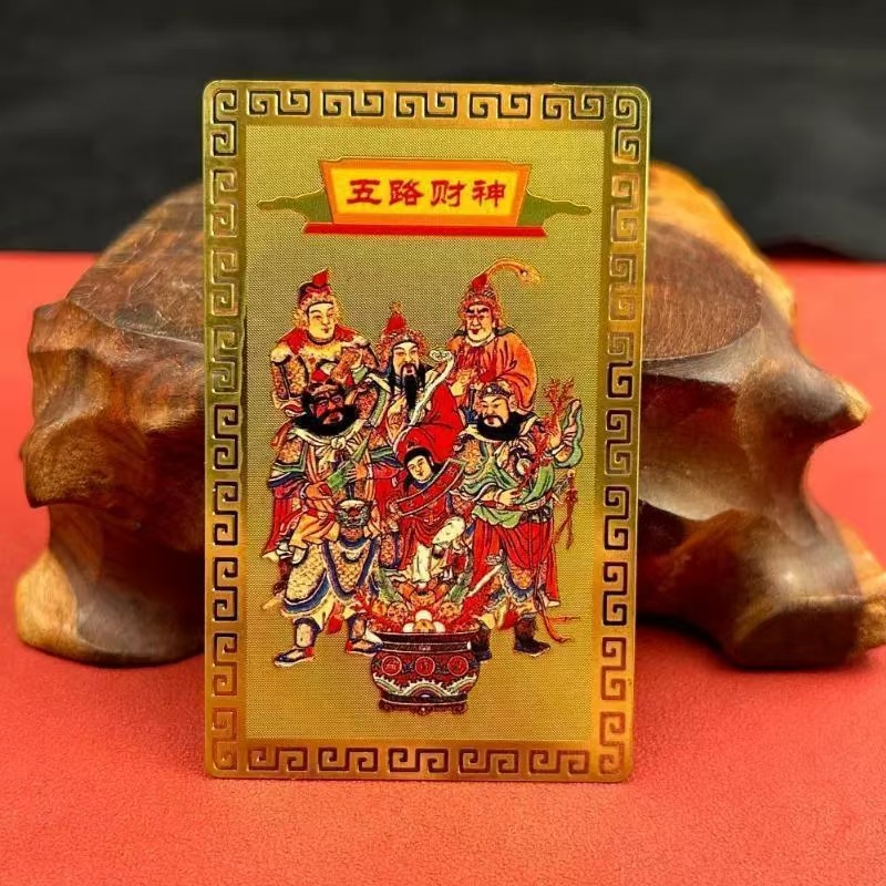 五路財神金カードは財神の寝室の金属の本命年の携帯電話の装飾品のマスコットのカードの置物を身につけます。