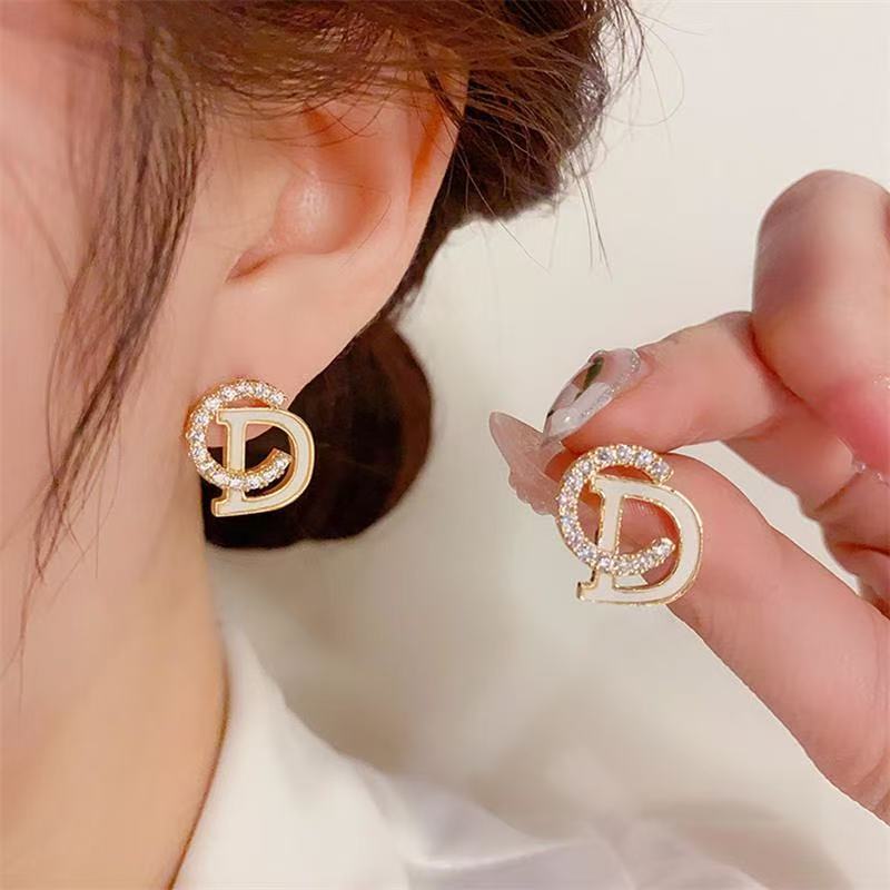 ダイヤモンドCD金色のピアスの組み合わせのアルファベットのネットの赤い気質のシンプルなイヤリングの女性の潮の小さい大衆のファッションのデザインの耳飾りの贈り物