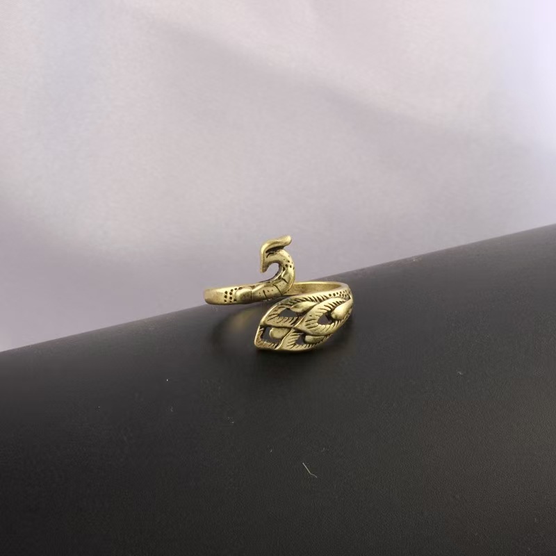 シンプルなレトロな立体青銅色の孔雀の指輪の女性の活口の装飾品のフックの毛糸の線の神器のメーカーは直接供給します。