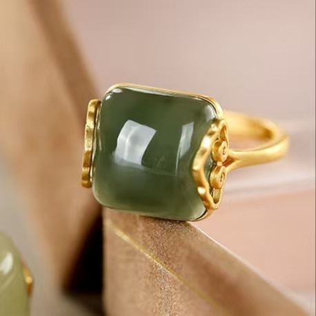 緑の玉の髄の銀色の宝石の指輪の女性の金の活口は色の銀色のアクセサリの指輪の女性の金を落とさないで開けます。
