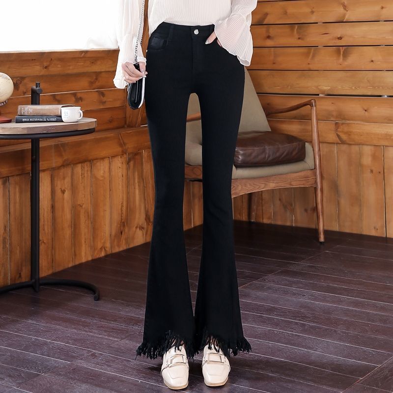 タッセルデニムフレアパンツレディース初秋2022春秋新作ハイウエスト万能9点カジュアルブラックフレアパンツ