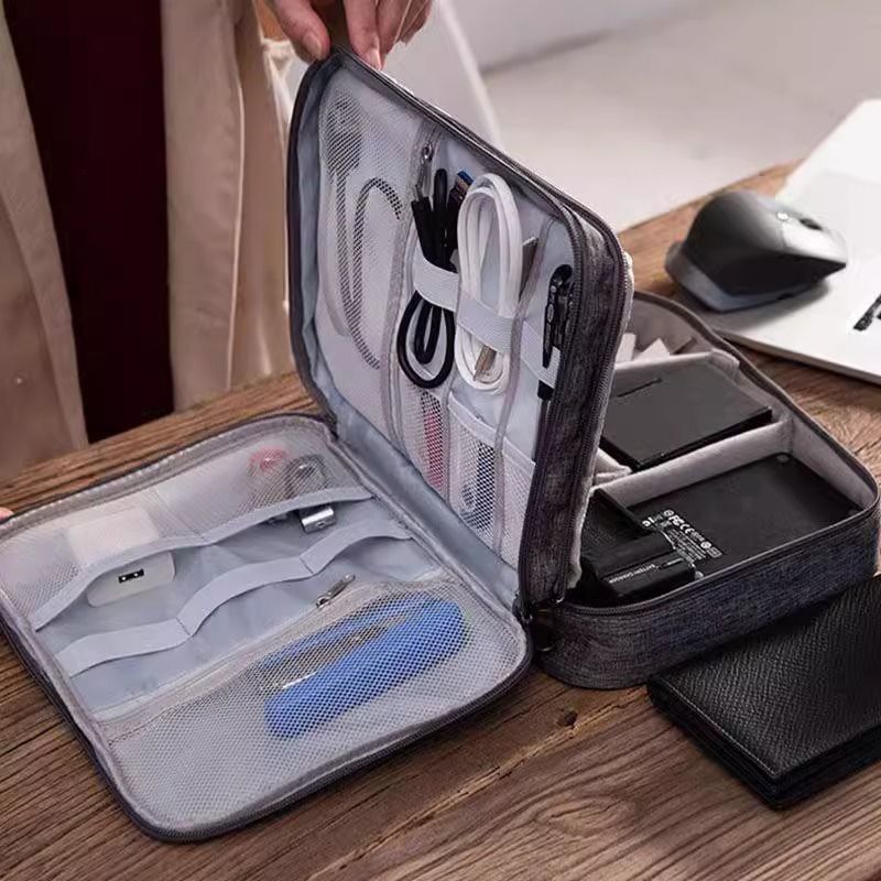 充電器データケーブル3層収納バッグ防水ポータブルデジタル整理旅行出張イヤホンケーブルボックス