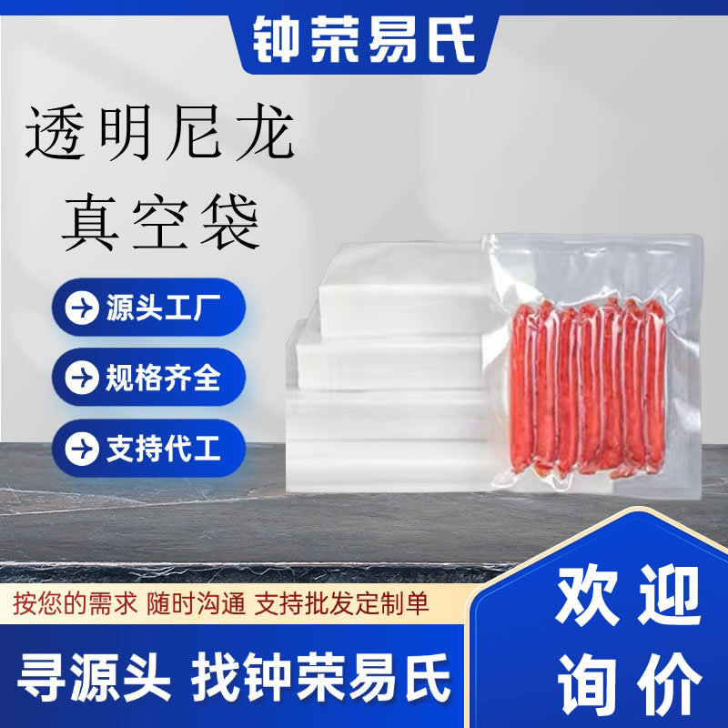 卸売り厚いナイロン真空袋食品包装袋透明18糸光沢面保鮮密封ポケット源メーカー