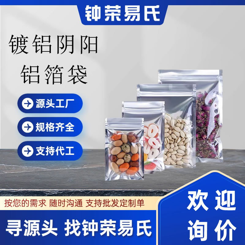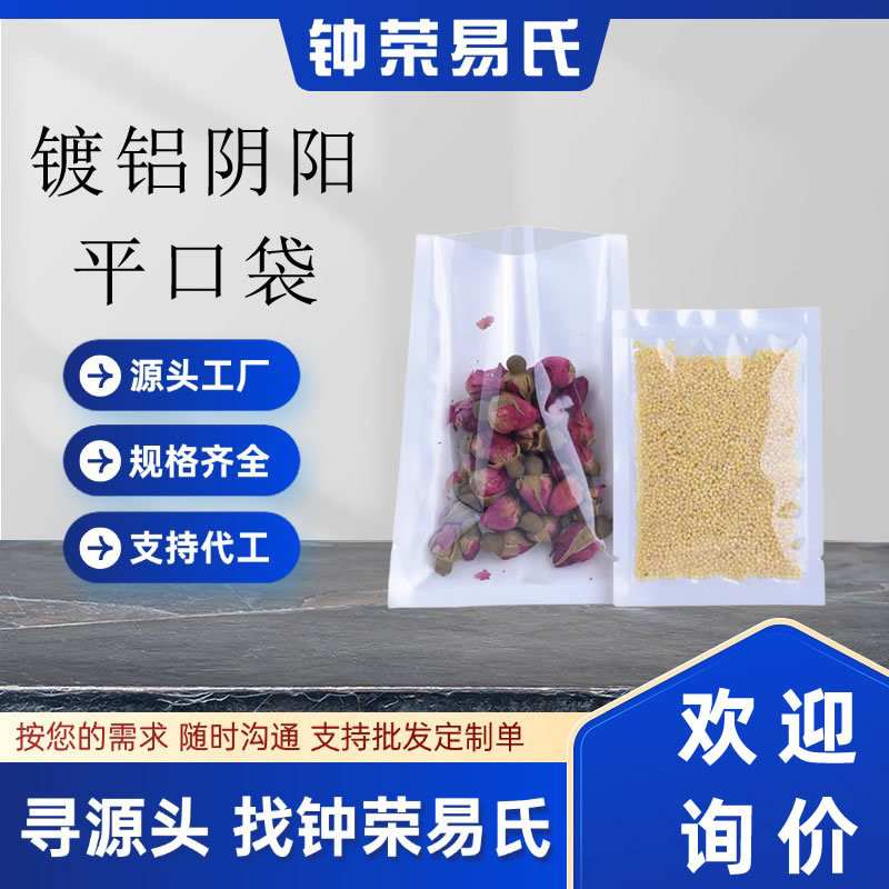 卸売アルミメッキ陰陽平ポケット半透明アルミ箔袋三辺シール食品真空ヒートシール複合包装袋
