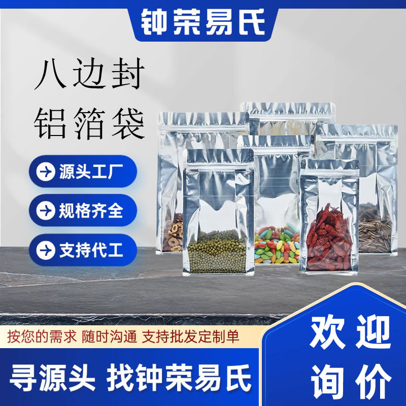 卸売り陰陽八辺封アルミ箔オルガン袋自立自封袋半透明プラスチック密封食品級包装袋