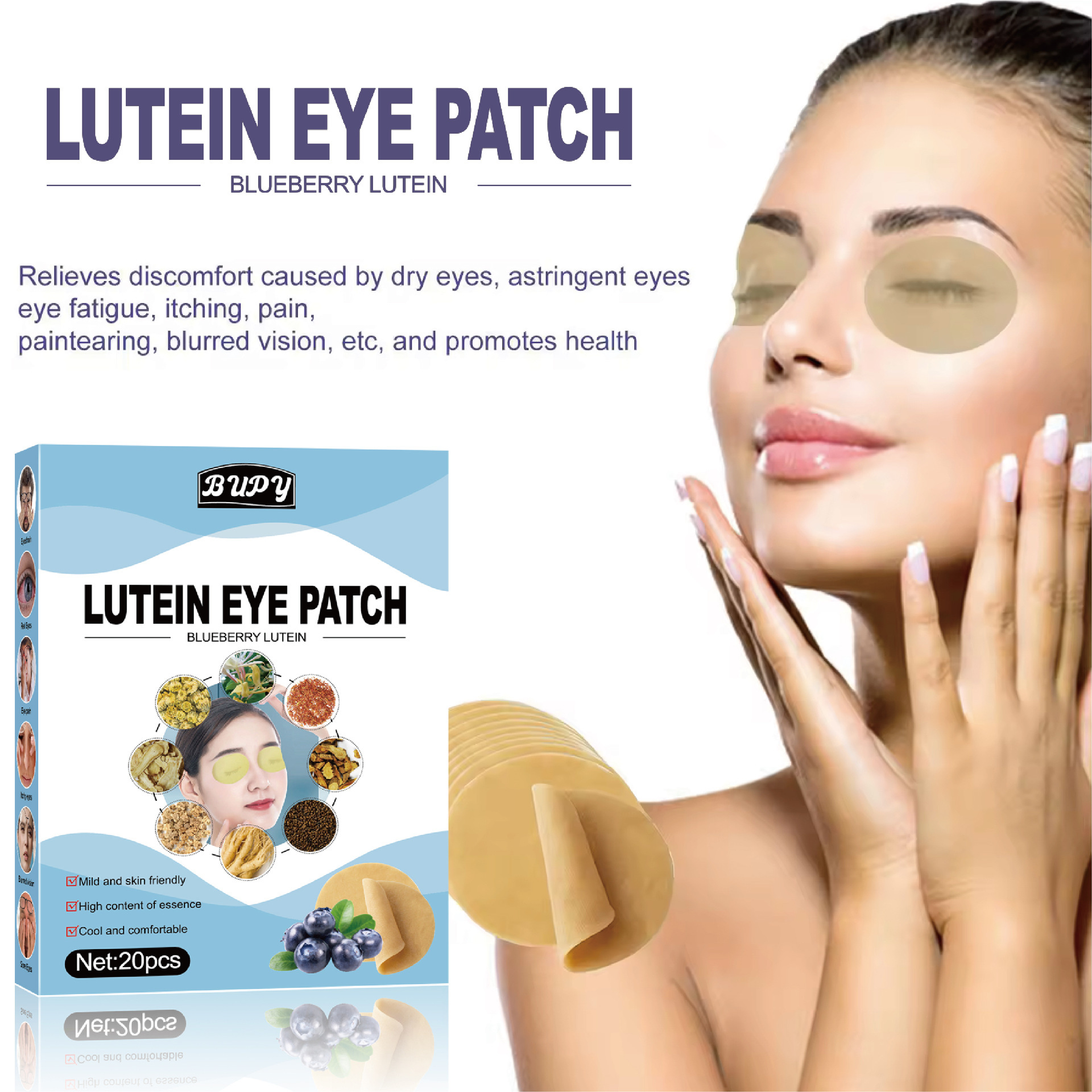 BUPYブルーベリーキサントフィル不織布冷間アイパッチ目の疲れを緩和する目の渋いアイパッチクロスボーダー卸売り