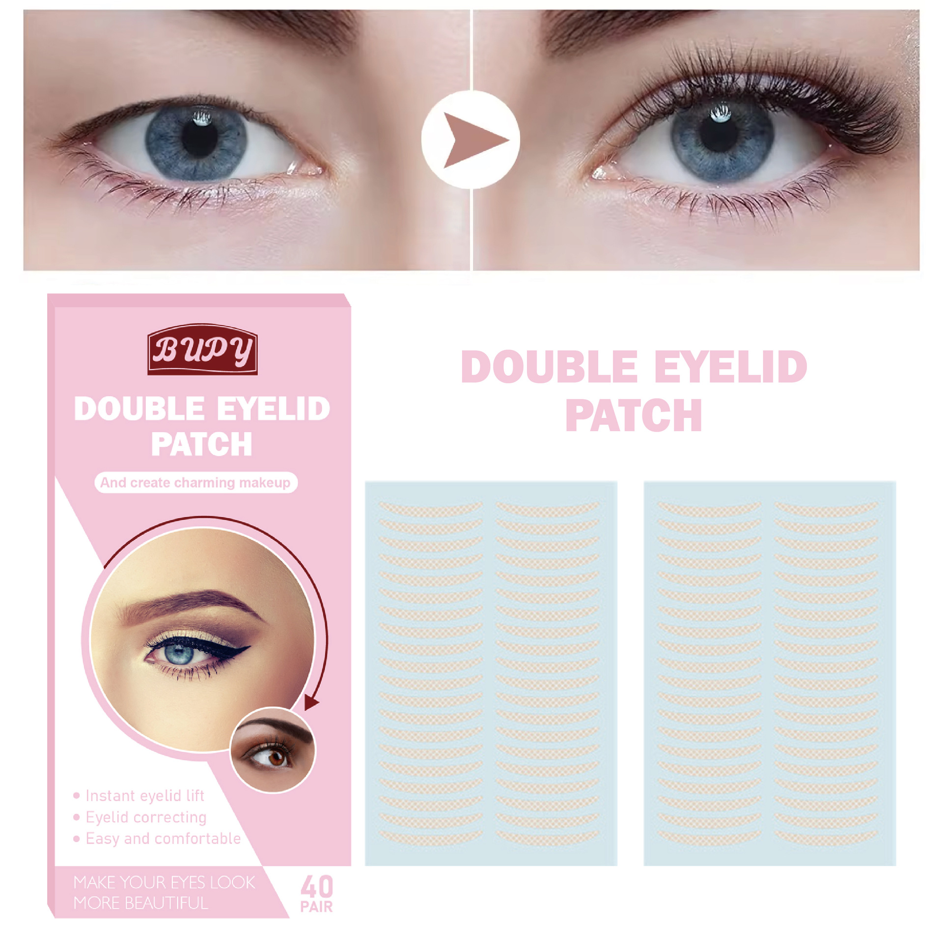 クロスボーダーbupy二重まぶた貼りネット文オリーブ型反射しない通気性肉色自然見えない透明美眼貼り