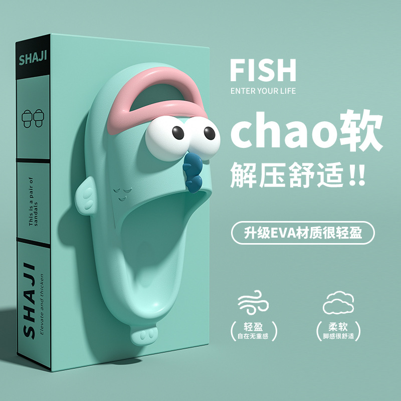 かわいいサンダルの女性の夏の新型はカップルの醜い萌えの醜い魚の室内の家で風呂に入るのが滑り止めです。