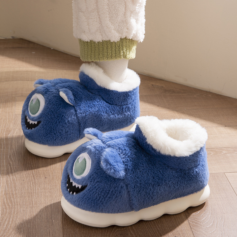 かわいい大きい目の子供の綿のスリッパの女性の冬のベルベットの保温の室内の厚い底の滑り止めのカップルの高い綿の靴