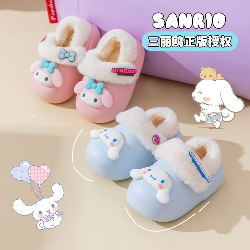 子供用綿スリッパ秋冬保温室内家庭滑り止め防水アニメ正規版サンリオバッグと毛羽綿靴