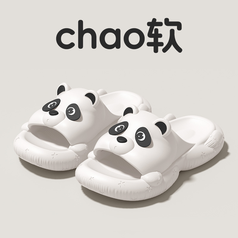 パンダのサンダルの女性の夏の2025新型の室内の厚い底の滑り止めのカップルのかわいいスリッパの男性は外で着ます。