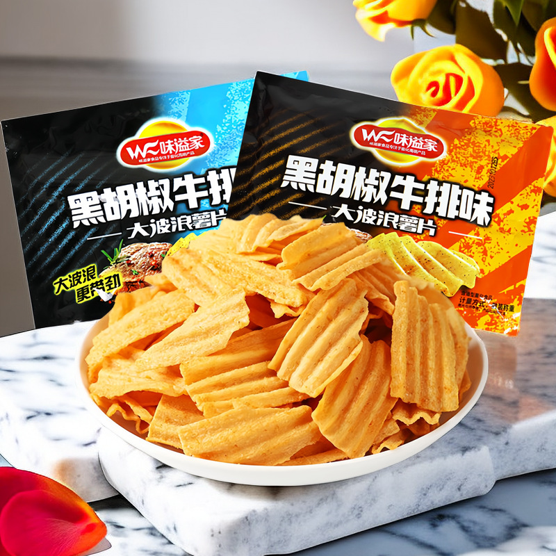 Weiyijia ビッグウェーブポテトチップス ブラックペッパーステーキ風味ポテトチップス スナック インターネットセレブ パフクリスピー スナック バルク