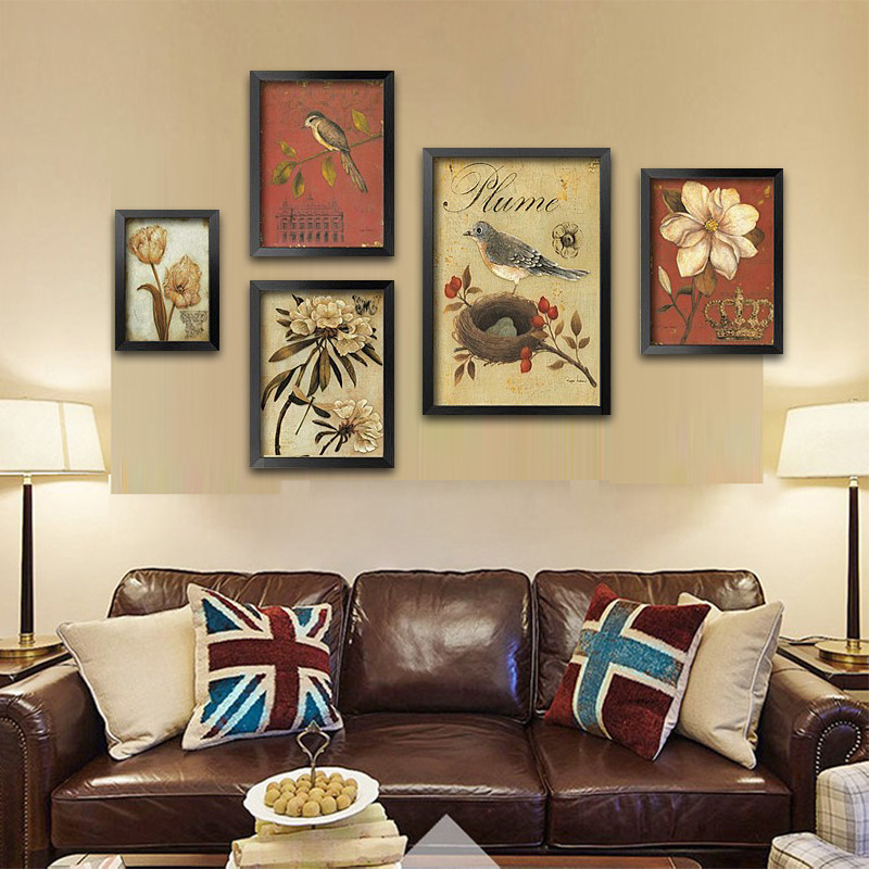 アメリカの田園の風格の装飾画のヨーロッパ式の古典的な花鳥は枠があって客間のソファーの背景の壁の壁画を掛けます。