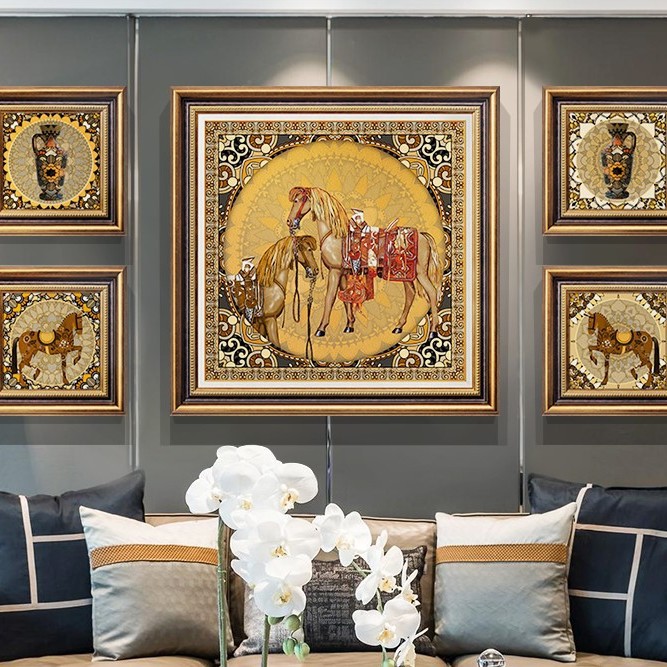 ヨーロッパ式のリビングルームの組み合わせはアメリカ式のソファーの背景壁の装飾画のサンプルプレートの間の壁画のレストランの壁画の大気の馬を掛けます。