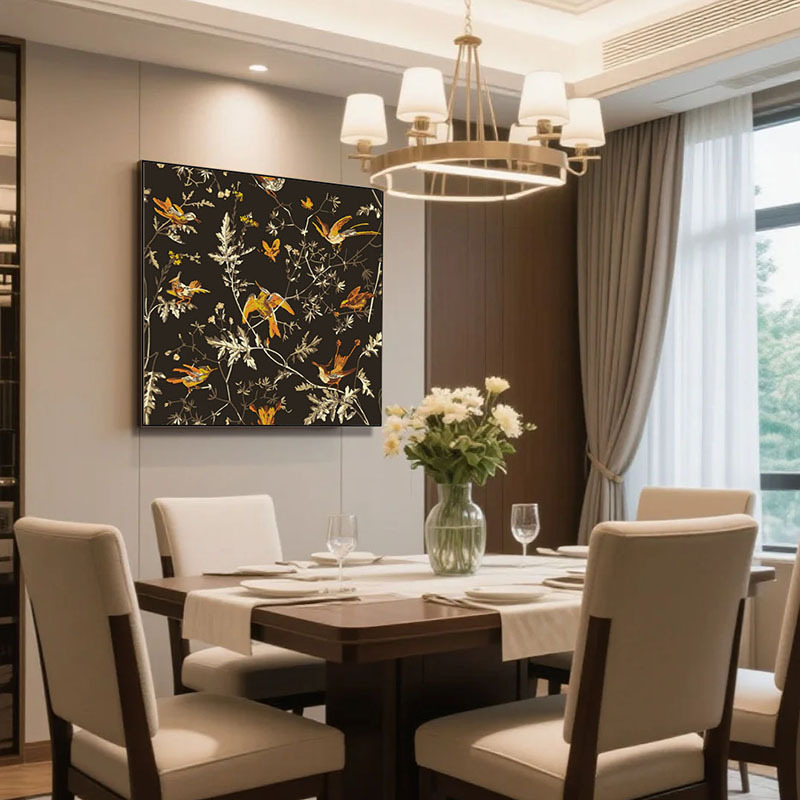 寝室の黒いベッドのレトロな装飾画フランス風の中古風な客間の高級感は家に入る玄関の花鳥画を掛けます。